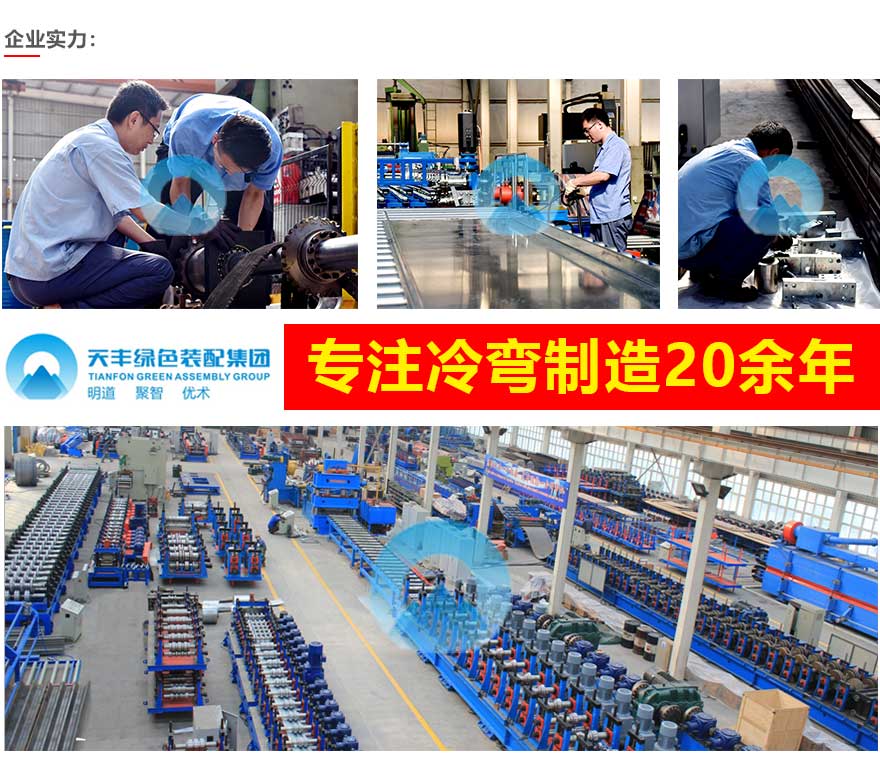 2. 整条冷弯生产线占地面积小,自动化程度高,需人工少。运行时生产线噪音小,具有高强度及高精度稳定性。
