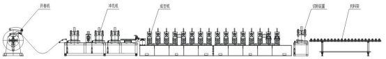 电气罩壳自动生产线该生产线由上料小车、开卷机、入料导正、冲孔、切断、辊压成型机、成型剪、自动码垛、液压系统、电气控制系统组成。该生产线在线不停机冲孔、不停机切断
